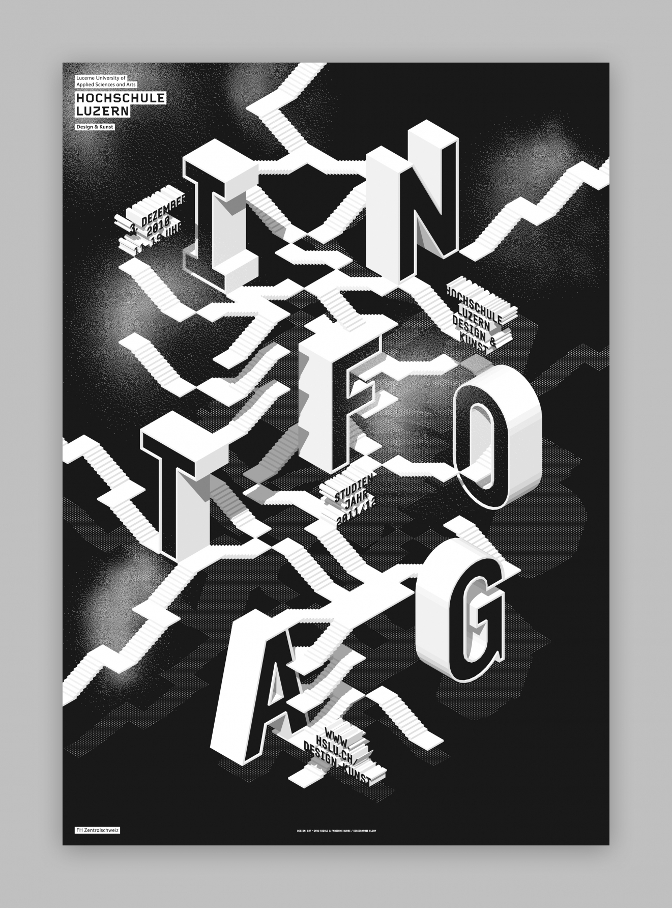 •  Infotag 2010 Hochschule Luzern Visueller Auftritt und Plakat für den Infotag 2010 der Hochschule Luzern – Design & Kunst. Plakat F4 (895 x 1280 mm) Druck: SiebdruckDesign: Cybu Richli, Fabienne Burri Plakate
