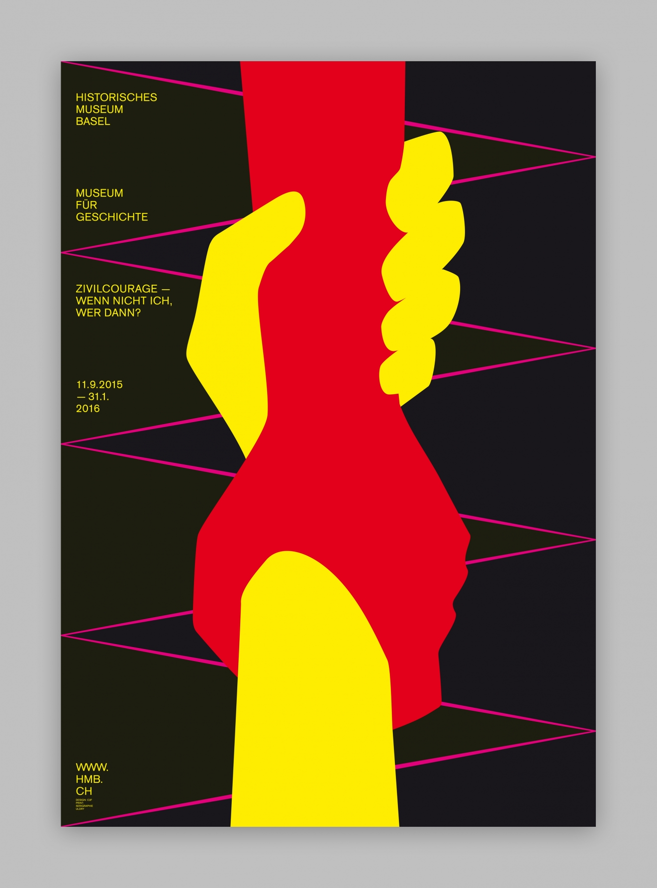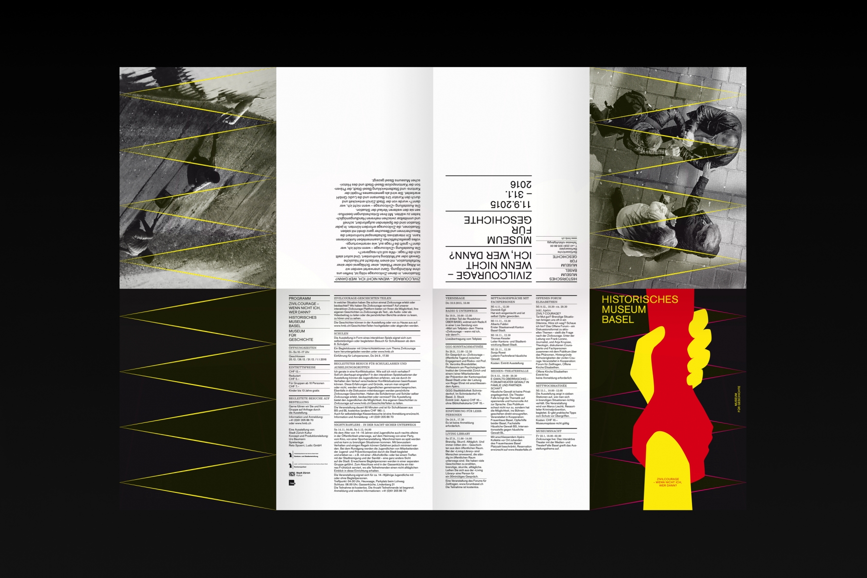• • • • •  Zivilcourage Historisches Museum Basel Visueller Auftritt für die Ausstellung «Zivilcourage» im Historischen Museum Basel. PlakatF4 (895 x 1280 mm),Druck: SiebdruckWeitere diverse Kommunikationsmittel Plakate