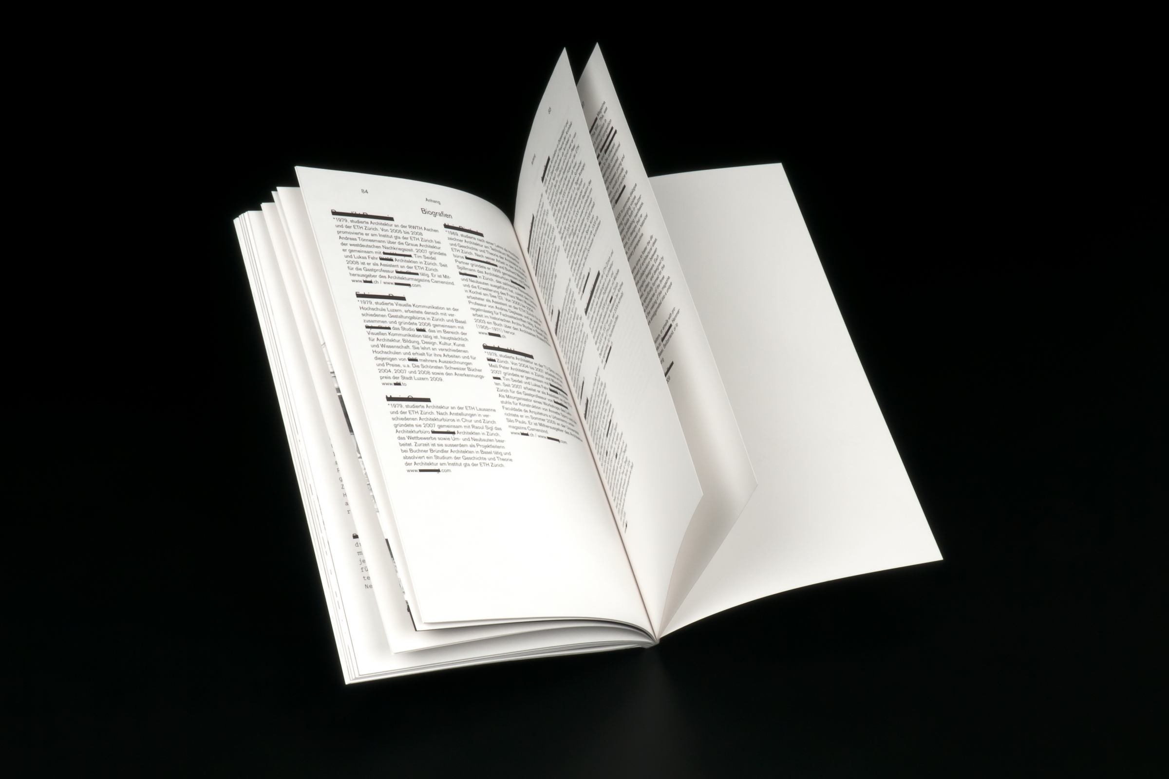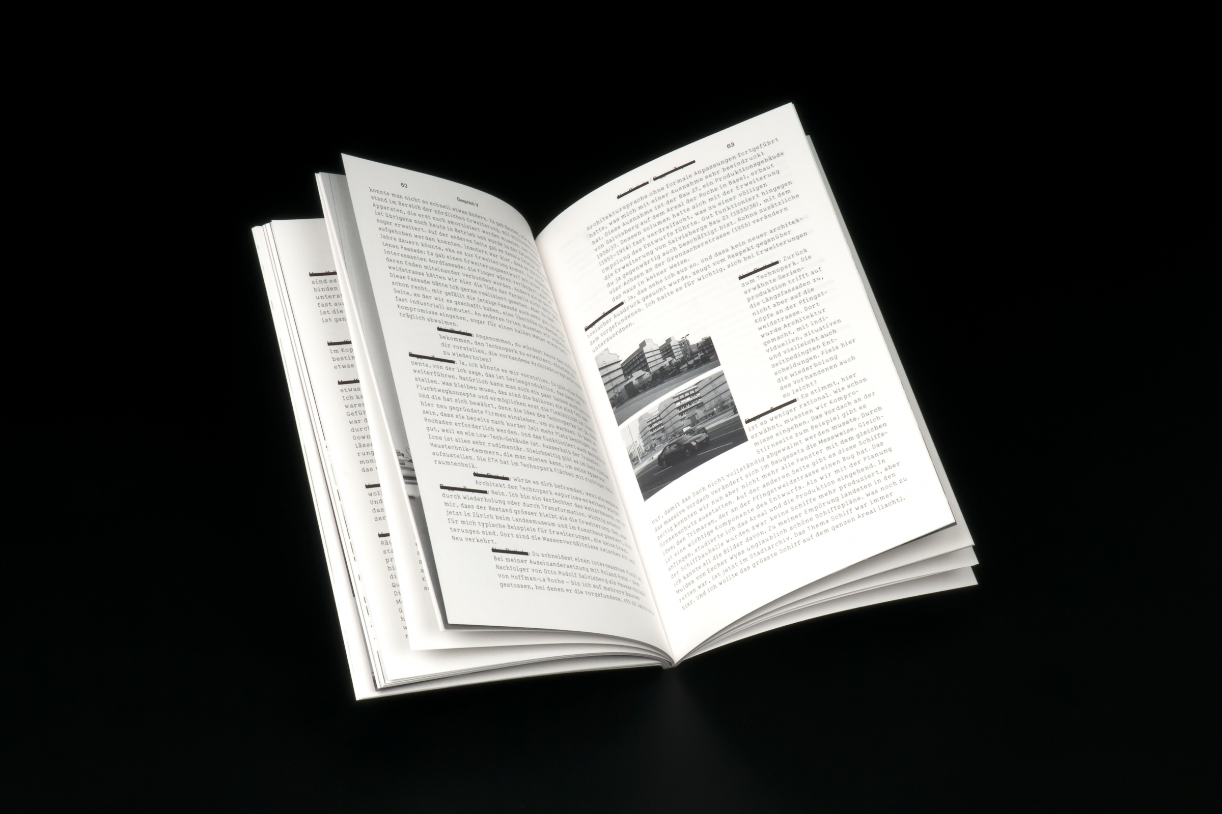 Inspired by the legendary conversation between François Truffaut and Alfred Hitchcock, published in 1966, young architects ask their older and experienced professional colleagues. (Professional-) Secrets want to be uncovered. The blacked-out names and photographs only can be deciphered and recognized on a closer inspection.